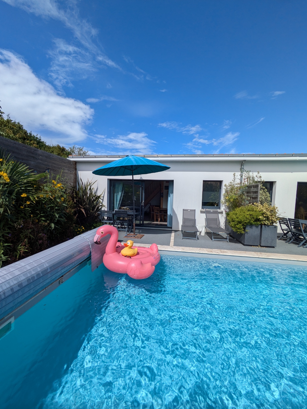 Situé en deuxième position face à la piscine. Vous avez votre terrasse privée avec sa table et ses chaises extérieures.